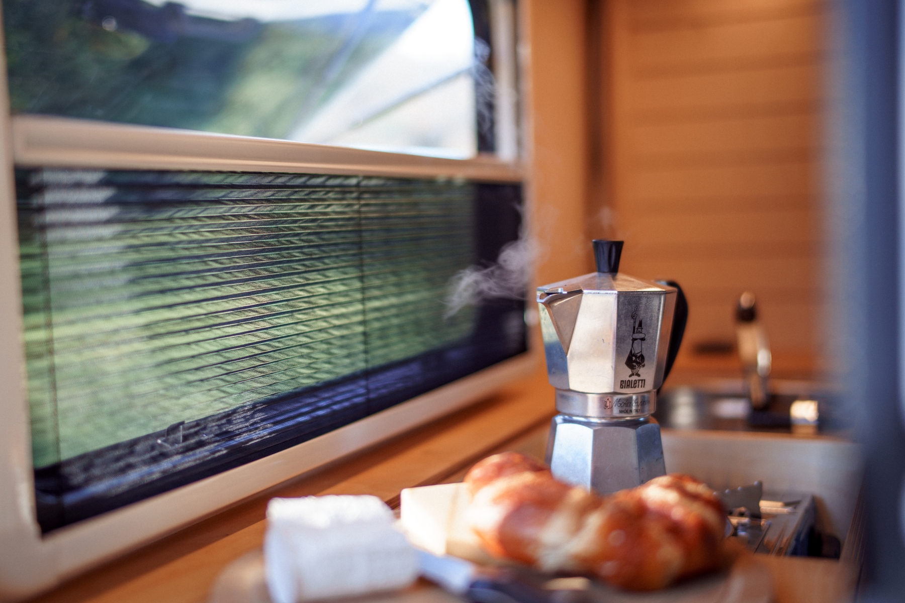 Was braucht man mehr: Ein Bett zum Schlafen, einen Unterschlupf bei schlechtem Wetter und eine Möglichkeit, sich einen Kaffee zu machen. Warum mit einem Wohnmobil das ganze Jahr eine Küche durch die Gegend fahren, warum sich um Gasprüfung oder Kundendienst kümmern, wenn es Bruno gibt? Unseren Bruno bezeichnet man auch gerne als Mini Wohnwagen oder Teardrop Camper. Er passt in jede Garage und wenn du am Freitagabend Lust bekommst, fährst du einfach los.